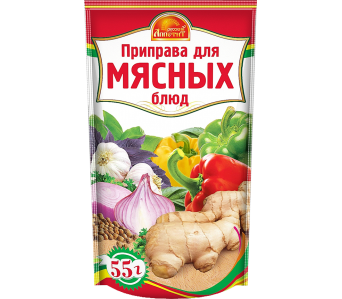 Сочетание майорана, имбиря, кориандра и мускатного ореха, усиленное набором специй, трав и овощей, добавляет аромат в любые мясные блюда. Подчеркните вкус мяса, сделайте его пикантным. Добавить за 15-20 минут до готовности в любое горячее блюдо.